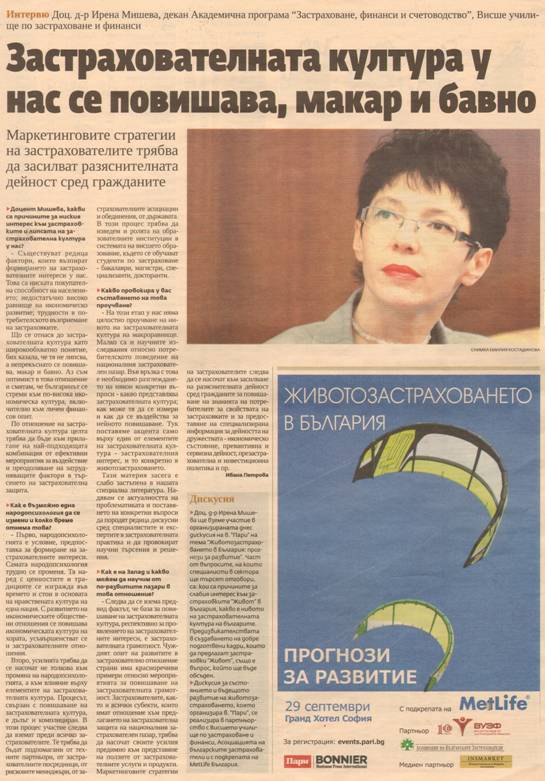 Доц. д-р Ирена Мишева: Застрахователната култура у нас се повишава, макар и бавно